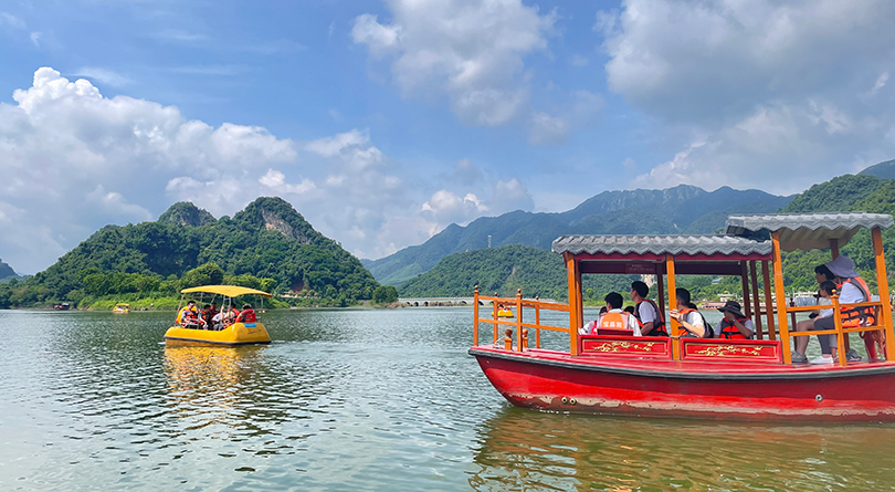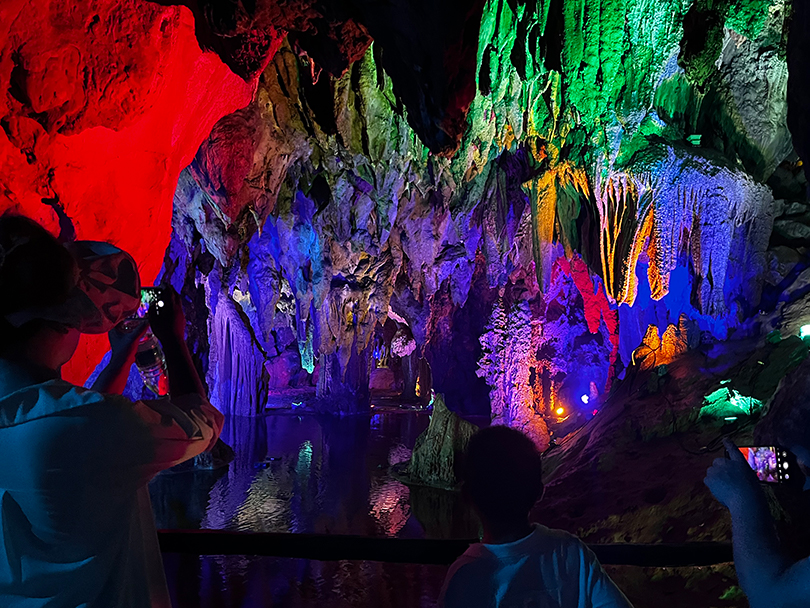 景点一:宝晶宫(天鹅湖游船、亿年溶洞、天宫玻璃桥)。乘船赏湖景,体验“船在湖中行,人在画中游”的美妙意境;游览素有"岭南第一洞天"之称的亿年溶洞,其大自然的鬼虎神功雕琢出气势非凡的岩壁、巨大的喀斯特洞天,让人流连忘返;体验世界最长喀斯特地貌湖景玻璃桥“天宫玻璃桥”,让人胆战心惊,又增添了游玩的趣味性和挑战性。