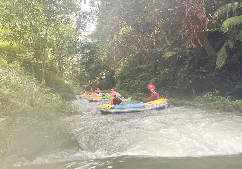 景点二:老虎谷漂流。广东唯一穿越岩洞的暗河漂流,以水流急、高落差、林奇山秀及岩洞幽深享誉海内外。在漂流中,让大家体验到了激流勇进、乘风破浪的快乐和勇气。