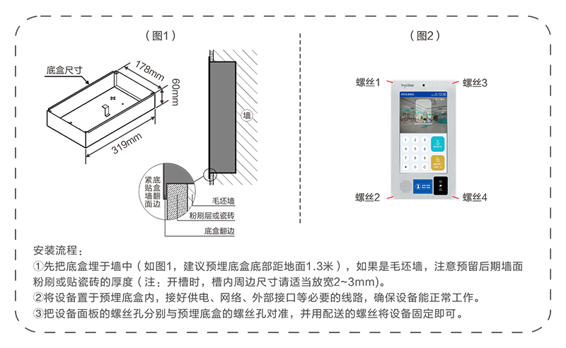 ? 采用10.2英寸触摸显示屏,铝合金外壳,含摄像头,支持1080P高清视频,嵌入式安装在病区门口。